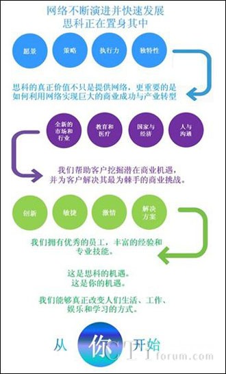 思科的智能網(wǎng)絡(luò)一直致力于最大化地推動業(yè)務(wù)和產(chǎn)業(yè)創(chuàng)新,幫助眾多行業(yè)的領(lǐng)軍企業(yè)與組織機構(gòu)更快更有效的實現(xiàn)發(fā)展目標。從核心網(wǎng)絡(luò)到相應(yīng)服務(wù),從協(xié)作應(yīng)用到高端視頻,從數(shù)據(jù)中心、虛擬化到云計算架構(gòu)解決方案,思科都憑借行業(yè)領(lǐng)先的競爭優(yōu)勢幫助客戶和合作伙伴實現(xiàn)商業(yè)成功和多方共贏,并與他們一道推動信息通信產(chǎn)業(yè)的健康快速發(fā)展。