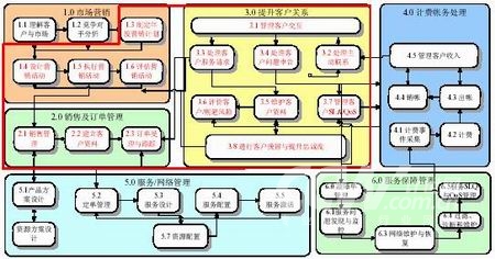 AIOpenCRM將重點(diǎn)支持客戶/市場層面的服務(wù)開通、服務(wù)保障的內(nèi)容,具體包含了市場營銷、銷售及訂單管理、提升客戶關(guān)系、計費(fèi)帳務(wù)處理、服務(wù)開通管理、服務(wù)報障管理這六個高層流程的前三個。如下圖: