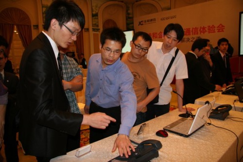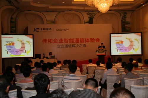 CTI論壇(ctiforum)4月25日消息(記者 潘婷婷): 廣東佳和通信技術有限公司主辦的首場企業(yè)智能通信體驗會,于2011年4月13日在廣州富力麗思卡爾頓酒店隆重召開,并取得圓滿成功。此次體驗會來自佳和通信的負責人和業(yè)內專家就佳和企業(yè)智能通信平臺的應用以及協(xié)同辦公的發(fā)展趨勢發(fā)表了主題演講,為所有到場的100多位來賓做了詳實的介紹。同時展示了佳和“!毕盗械7個應用解決方案,并對拳頭產品——智能IP話機T600、移動分機M600、個人助理軟件IPA PRO等進行了現(xiàn)場演示和互動,其目的在于使現(xiàn)場嘉賓充分感受企業(yè)智能通信的價值和魅力,同時親身體驗到如何在在加速辦公自動化的同時提高企業(yè)效率、節(jié)約成本。CTI論壇報道