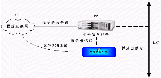 從程控端局送出來(lái)的信令和話路通過(guò)不同的PCM傳輸,信令鏈路接到七號(hào)信令網(wǎng)關(guān)轉(zhuǎn)換,通過(guò)消息方式傳遞到呼叫中心平臺(tái),而話路則直接通過(guò)PCM線連接到電信平臺(tái)上進(jìn)行話路連接。這種方式結(jié)構(gòu)明晰,有利于系統(tǒng)管理,大大增強(qiáng)了系統(tǒng)容量的擴(kuò)展能力。