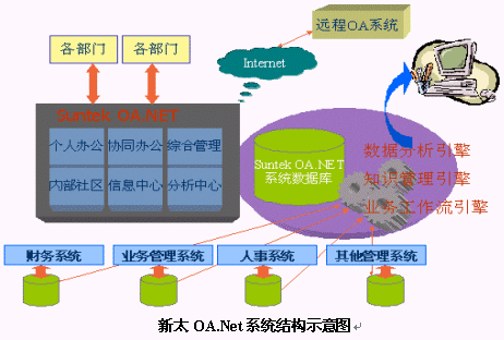 OA.NET采用了應(yīng)用服務(wù)器、群件數(shù)據(jù)庫(kù)、關(guān)系數(shù)據(jù)庫(kù)三元合一的技術(shù)體系架構(gòu),集成了XML、Web Service等業(yè)界最新技術(shù),能夠在Win2000以及Sun、IBM、HP等多種Unix、Linux環(huán)境下運(yùn)行,并具有良好的平臺(tái)兼容性。OA.NET系統(tǒng)具有高度靈活性、簡(jiǎn)單實(shí)用性、知識(shí)管理解決方案、和業(yè)務(wù)系統(tǒng)的無(wú)縫融合、高度的個(gè)性化等特色,被業(yè)內(nèi)專家認(rèn)為代表了最新的辦公自動(dòng)化發(fā)展水平,并引領(lǐng)著辦公自動(dòng)化的先進(jìn)發(fā)展方向。