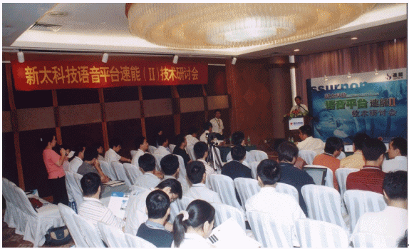 7月23日,新太科技在廣州花園酒店舉行"語音平臺速能II技術(shù)研討會"。新太科技執(zhí)行總裁梁平、副總裁何健明,開發(fā)中心副經(jīng)理張少文,營銷中心國際業(yè)務(wù)部副總經(jīng)理馬任遠(yuǎn)、產(chǎn)品經(jīng)理黃偉,新太科技合作伙伴Intel公司通訊產(chǎn)品業(yè)務(wù)部戰(zhàn)略客戶經(jīng)理林競宇,新太語音平臺速能產(chǎn)品核心代理商--廣州納特威科技公司總經(jīng)理黃淡輝,渠道總代理商--深圳意科特實業(yè)有限公司總經(jīng)理李面換等到會并作主題發(fā)言。《中國計算機(jī)報》、《計算機(jī)世界》、《SP計算機(jī)產(chǎn)品與流通》、IT168共四家專業(yè)媒體記者到會采訪。