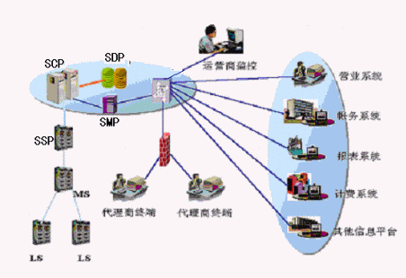 4、SMAP:負(fù)責(zé)在一定的權(quán)限內(nèi)為代理商提供接入訪問(wèn)功能,支持代理商通過(guò)撥號(hào)或DDN專線接入代理商管理系統(tǒng),代理商管理系統(tǒng)存儲(chǔ)代理商所有數(shù)據(jù),提供Web服務(wù)方式的應(yīng)用功能界面。代理商管理系統(tǒng)能夠?qū)I(yè)務(wù)受理的數(shù)據(jù)發(fā)送到智能網(wǎng)、交換機(jī)系統(tǒng),完成代理商對(duì)所代理業(yè)務(wù)的實(shí)時(shí)處理。