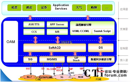 流程解析引擎支持VXML及SUNTEK Script流程語言,通過SCE集成開發(fā)環(huán)境,可以方便地定制開發(fā)動(dòng)態(tài)語音流程。除實(shí)現(xiàn)IVR功能外,還可以通過數(shù)據(jù)鏈路同步向用戶的終端推送數(shù)據(jù),并通過終端軟件的解析后展現(xiàn)在客戶面前。