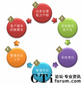 Frost & Sullivan(中國)研究經理胡浩泳認為銀行呼叫中心作為客戶體驗最主要的窗口之一,在其中扮演了十分關鍵的作用。以北京農村商業(yè)銀行為例,雖然該行較早地使用了呼叫中心系統(tǒng),但隨著業(yè)務的拓展,他們發(fā)現(xiàn)遇到了越來越多的挑戰(zhàn),舊有的呼叫中心已經遠遠不能滿足客戶服務的需要,這主要體現(xiàn)在三個方面: