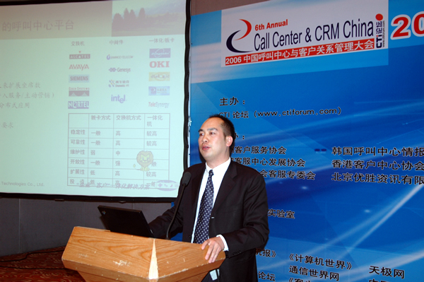 2006年4月3日至5日,2006中國呼叫中心與客戶關(guān)系管理大會在北京國際會議中心隆重召開,以下是星際網(wǎng)絡(luò)的執(zhí)行副總裁柳國東專題演講實錄: 第一個特點(diǎn)就是我們提出來了一個全程一體化的服務(wù)解決方案。整個解決方案有三個層面,第一個層面就是我們要和企業(yè)一起建設(shè)一個適用的呼叫平臺,F(xiàn)在我們企業(yè)在選擇建立呼叫中心的時候也有一些困惑,比如說我要建設(shè)一個30個坐席的呼叫中心,可能很多集成商的方案和報價從20萬到100萬都有,現(xiàn)在各個呼叫中心的平臺都已經(jīng)很成熟了,但是作為企業(yè)來講,要選擇一個適合自己的呼叫中心,而不是選擇昂貴的或者是低廉的。我們建立呼叫中心以后可以進(jìn)行高效率的電話接聽和服務(wù)人員的管理平臺。但是并不能解決我們服務(wù)的流程管理、流程監(jiān)控。咨詢的結(jié)果我們并沒有因為建立呼叫中心就把問題解決了。所以我們星際網(wǎng)絡(luò)提出了服務(wù)應(yīng)用的概念。一般來說現(xiàn)有的企業(yè)大概的服務(wù)方式有兩種,那么星際網(wǎng)絡(luò)根據(jù)這兩種不同的服務(wù)模式,我們也提供了相應(yīng)的服務(wù)應(yīng)用。我們希望通過一個前臺高效的服務(wù)中心平臺,和后臺一個豐富的系統(tǒng)應(yīng)用,真正幫助企業(yè)解決完成的客戶流程。