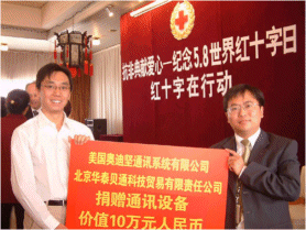 4月,SARS在北京肆無忌彈的橫行,其它國家和地區(qū)也都不同程度地受到SARS的侵害,給人民的生活和工作帶來了極大的影響,人們的身體健康和生命安全受到了威脅。中國紅十字會(huì)廣大工作人員對此次疫情迅速響應(yīng),為了支持中國中國紅十字會(huì)總開展SARS疫情的救助和捐贈(zèng)工作,幫助其通過現(xiàn)代化的通訊手段快速準(zhǔn)確的進(jìn)行話務(wù)處理,以便更好地保護(hù)人民的生命和健康,4月30日,奧迪堅(jiān)通訊系統(tǒng)(上海)有限公司聯(lián)合北京華泰貝通科技貿(mào)易有限責(zé)任公司向中國紅十字會(huì)總會(huì)捐贈(zèng)了價(jià)值約10萬余人民幣的呼叫中心系統(tǒng),軟件以及相關(guān)服務(wù),以實(shí)際行動(dòng)幫助中國紅十字會(huì)總會(huì)抗擊SARS。