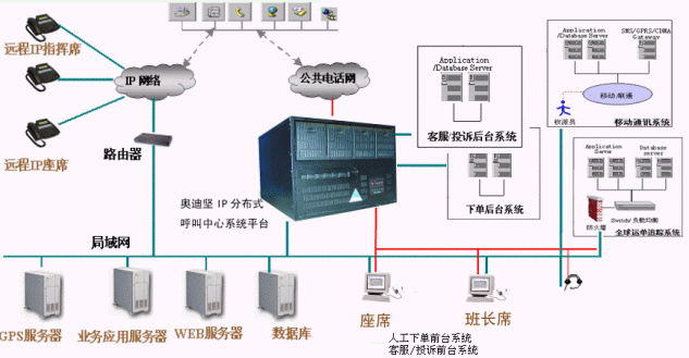 - 該物流呼叫中心系統(tǒng)基于奧迪堅(jiān)IP的分布式呼叫中心技術(shù),可以實(shí)現(xiàn)公司業(yè)務(wù)、物流中心、倉庫、銷售代表、售后服務(wù)等部門通過VoIP方式的有機(jī)結(jié)合,節(jié)省企業(yè)的運(yùn)營成本,也可以拓展企業(yè)銷售與服務(wù)的外延;