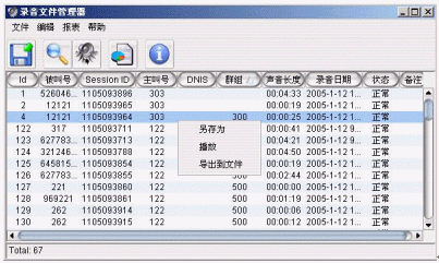Manager是奧迪堅(jiān)全新推出的基于數(shù)據(jù)庫(kù)的錄音文件管理應(yīng)用軟件,主要針對(duì)ACM的內(nèi)置錄音系統(tǒng)所錄制下來(lái)的文件進(jìn)行索引、播放、保存、備份、格式轉(zhuǎn)換、搜索等各項(xiàng)操作,使管理者能夠?qū)蛻舴⻊?wù)人員進(jìn)行服務(wù)質(zhì)量考核與管理,保證微笑客戶服務(wù),提升客戶的滿意度。整個(gè)服務(wù)中心的電話錄音采用電腦數(shù)字化技術(shù),因此無(wú)需增加傳統(tǒng)的錄音服務(wù)器,每路座席外線都自帶錄音資源,可以進(jìn)行多線同時(shí)錄音,錄音記錄,錄音回放,并且可以實(shí)現(xiàn)撥號(hào)/摘機(jī)識(shí)別/掛機(jī)識(shí)別/通知錄音/錄音監(jiān)聽(tīng)/完成記錄等功能,每個(gè)模塊均采用獨(dú)立運(yùn)行方式,互為備份不影響。奧迪堅(jiān)電話錄音系統(tǒng)提供智能型的?旖M合設(shè)置和條件,包括錄音查詢及系統(tǒng)參數(shù)設(shè)置;通道狀態(tài)設(shè)置;各種條件的錄音查詢;多通道連選同時(shí)播放;組合的保存、備份和刪除;工作日志的記錄和打。幌到y(tǒng)和用戶權(quán)限的增刪編輯等功能,極大的方便管理人員的操作和使用。