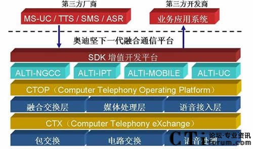 目前隨著軟交換的不斷發(fā)展,軟交換的架構(gòu)越來越適用于語音交換和呼叫中心系統(tǒng)平臺(tái), 并且其整合新技術(shù),新功能的能力也越來越強(qiáng)大,因此奧迪堅(jiān)在去年推出了下一代融合通信平臺(tái)解決方案。