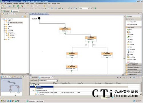界面使用了標(biāo)準(zhǔn)的呼叫流程設(shè)計(jì)組件創(chuàng)建語音應(yīng)用程序