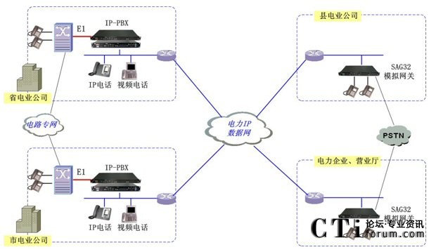 目前電網(wǎng)公司行政交換網(wǎng)仍延用傳統(tǒng)的程控電話交換系統(tǒng)組網(wǎng),部分縣級電業(yè)公司、電力企業(yè)由于各種原因未接入電網(wǎng)公司行政電話交換網(wǎng),與電網(wǎng)公司(供電局)間必須通過運(yùn)營商的PSTN電話網(wǎng)絡(luò)來實(shí)現(xiàn)。隨著電網(wǎng)公司與各代管縣電業(yè)公司、各電力企業(yè)業(yè)務(wù)聯(lián)系增加,企業(yè)、行業(yè)管理日益頻繁,為提高企業(yè)的工作效率,節(jié)省企業(yè)話費(fèi)開支,采用傳統(tǒng)的電話交換系統(tǒng)不能實(shí)現(xiàn)網(wǎng)內(nèi)通信。