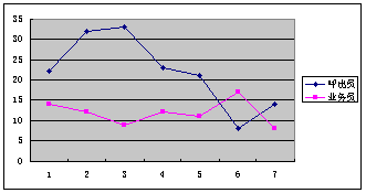 第五:考核指標(biāo)及獎(jiǎng)勵(lì)機(jī)制的建立:呼出人員必須有相應(yīng)的考核辦法及獎(jiǎng)勵(lì)機(jī)制,這從表1我們可以清楚地看到,呼出員的業(yè)績還不是很穩(wěn)定,有下降趨勢,而且幅度較大,這是由于在試運(yùn)行期間沒有建立相應(yīng)的考核指標(biāo)及獎(jiǎng)勵(lì)機(jī)制造成的,而有相應(yīng)機(jī)制的業(yè)務(wù)員的業(yè)績相對要穩(wěn)定得多。當(dāng)然富爾已經(jīng)意識(shí)到這個(gè)問題了,并采取了相應(yīng)的措施,目前2個(gè)呼出人員每人每天均穩(wěn)定在1萬元左右,說明采取的措施得力。