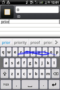 這里我們選取全鍵盤布局方案來測試本次的滑行輸入。首先是單行輸入,我們通過快速的手指滑行分別輸入“prior” “were”,單詞被準確識別。