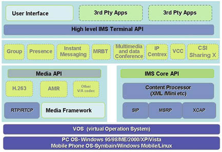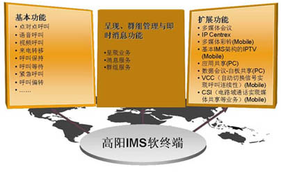 高陽IMS軟終端產(chǎn)品線是基于IMS(IP多媒體子系統(tǒng))技術(shù),以通信終端功能為主,融入IT特性,將在線狀態(tài)、即時(shí)消息和群組管理融為一體,集合語音、數(shù)據(jù)、視頻通信,提供統(tǒng)一的用戶體驗(yàn),實(shí)現(xiàn)移動(dòng)電話、PC之間的互聯(lián)互通,并且符合3GPP/ETSI/OMA/IETF/ITU-T等國際標(biāo)準(zhǔn)組織和中國電信/中國移動(dòng)規(guī)定的IMS相關(guān)規(guī)范。高陽3G IVVR交互式語音和視頻應(yīng)答產(chǎn)品 2009-06-01 |