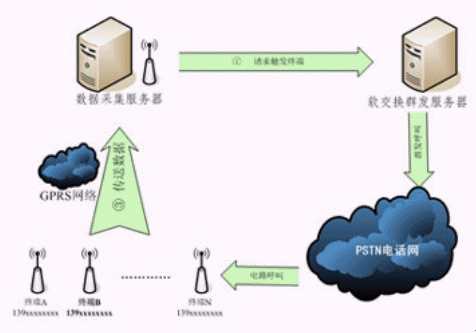 1X數(shù)據(jù)網(wǎng)絡的遠端模塊,用來傳輸設(shè)備的運行參數(shù),這種設(shè)備數(shù)量多至上萬個。由于GPRS或CDMA1X實時在線傳輸費用過于昂貴,因此設(shè)備數(shù)據(jù)采集需要每天定時有喚醒激活機制。采用軟交換的群發(fā)呼叫功能,可以定時大容量地呼叫GPRS或CDMA1X所在位置各手機號碼,以產(chǎn)生的鈴流來觸發(fā)遠程設(shè)備啟動GPRS或CDMA1X并傳輸數(shù)據(jù),確保遠程設(shè)備的正常運作。