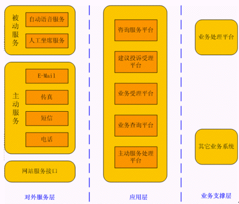 該系統(tǒng)提供5*8小時(shí)人工服務(wù)和7*24小時(shí)自動(dòng)服務(wù),提供政策法規(guī)咨詢、辦事指南、信息查詢、受理投訴舉報(bào)、進(jìn)行社會(huì)調(diào)查五大功能;預(yù)留電話職介和受理勞動(dòng)保障相關(guān)電話業(yè)務(wù)兩大功能,同時(shí)提供輔助功能,包括:資料庫(kù)建設(shè),信息定制與發(fā)布,內(nèi)部管理等。