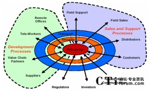 不同公司,生辰八字不同,發(fā)家史不同,決定了企業(yè)利益戰(zhàn)略點的不同,對統(tǒng)一通信的市場切入點和定位目標就存在一些差異。軟件商采用以桌面軟件為基礎(chǔ),從上往下滲透的策略,設(shè)備商采用從基礎(chǔ)架構(gòu)出發(fā),從下往上突破的策略,但對統(tǒng)一通信的基本認識可統(tǒng)歸為:以用戶為中心,實現(xiàn)跨時空的無限溝通。這里拋棄了網(wǎng)絡(luò)、終端、融合、平臺等技術(shù)層面的東西,而是完全從業(yè)務(wù)層面迎合了企業(yè)客戶的基本需求,企業(yè)聽到了自然心動!耙赂幌刃蘼贰保髽I(yè)要發(fā)展,就必須先修好這條通信大道。從中,我們也可看出統(tǒng)一通信不是一種技術(shù),也不是一項應(yīng)用,而是一種需求、一種企業(yè)對網(wǎng)絡(luò)、通信技術(shù)成熟發(fā)展之后的需求滿足的期望。此外,通過對這些主要廠家的UC解決方案進行分析,也可以發(fā)現(xiàn),無論大家的口號怎樣,PPT里的網(wǎng)絡(luò)架構(gòu)如何多變,卻一致地采用SIP協(xié)議進行會話控制,用IP協(xié)議進行數(shù)據(jù)傳輸,通過應(yīng)用服務(wù)器(或類似網(wǎng)元)提供各種統(tǒng)一通信功能。