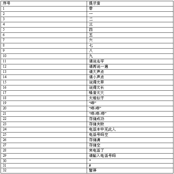 1-人名訓(xùn)練 2-人名識別 3-語音電話本 4-語音合成 5-控制功能 6-調(diào)試 7-DTMF 8-音樂 9-實(shí)時錄音/回放 10-來電播報