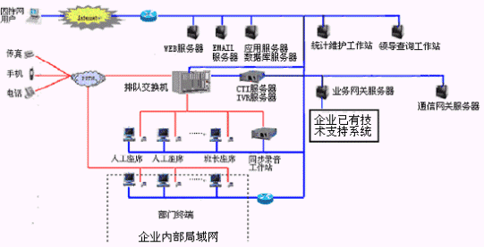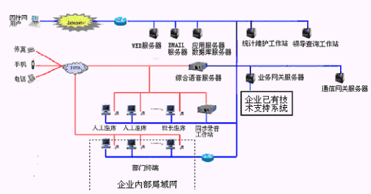 網上服務系統(tǒng):與INTENET結合,接受來自網上的呼叫請求,提高服務和營銷的質量和效率。