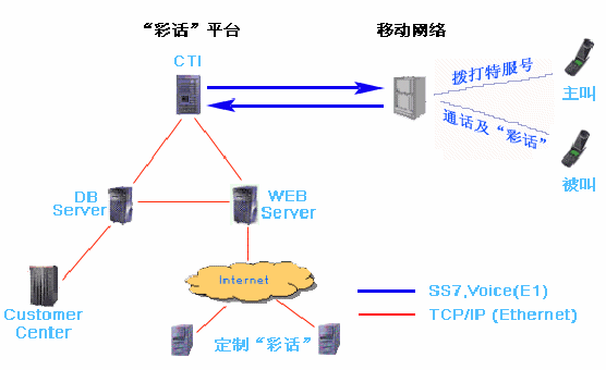 IVR:提供各種"彩話"、 用戶通過撥打IVR定制"彩話"、 通話過程中,用戶可進入IVR點播"彩話"