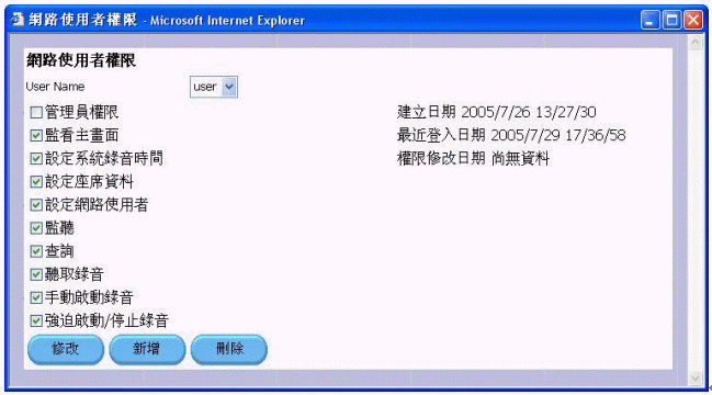 使用者權(quán)限:可在線創(chuàng)建新用戶(hù),并可設(shè)定多級(jí)權(quán)限。