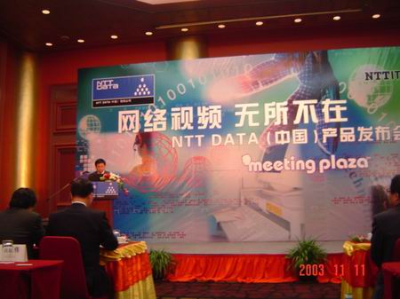 2003年11月11日,NTT DATA(中國)有限公司,在長城飯店舉行了名為“網(wǎng)絡視頻——無所不在”的產品發(fā)布會。會上,NTT DATA(中國)有限公司正式推出了一款網(wǎng)絡視頻軟件產品——“MeetingPlaza”。此產品開拓了視頻系統(tǒng)在圖像效果、控制靈活度以及性價比上的全新應用模式。該產品的開發(fā)商NTT-IT,自2001年6月起在日本開始系統(tǒng)的銷售及提供ASP服務。到現(xiàn)在已經(jīng)向500家以上的日本企業(yè)及地方政府提供了服務,在日本深受好評。在中國,雖然軟件視頻會議系統(tǒng)還處在起步階段,但依據(jù)未來視頻通訊的廣大需求,以及“MeetingPlaza”具有的投入成本低、限制少和適用性強的特點,都將使該產品更加具有市場潛力。