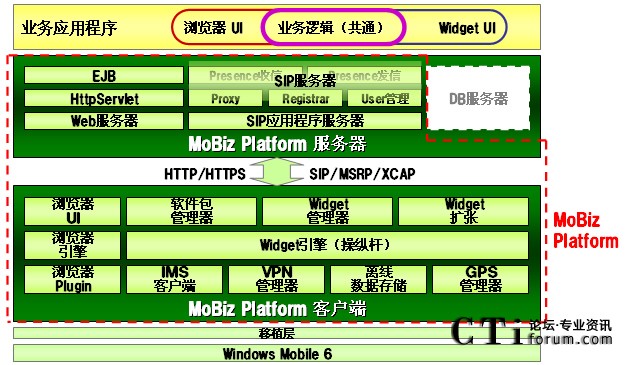 智能手機業(yè)務應用軟件開發(fā)•運行的基干中間件“MoBiz Platform”,由MoBiz服務器和MoBiz客戶端構(gòu)成。