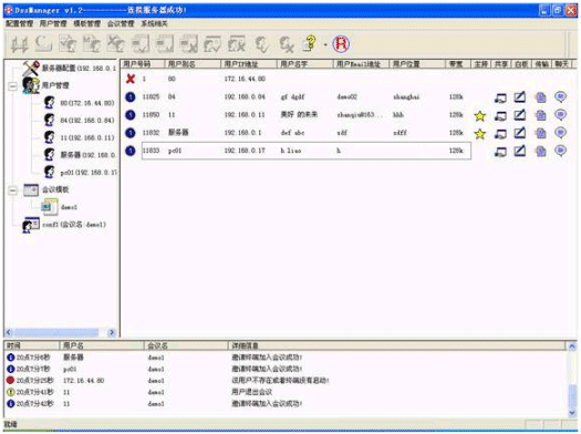 簡單方便的用戶管理,可以增加用戶、修改用戶信息、刪除用戶等。在會(huì)議中可以實(shí)時(shí)地檢測和顯示用戶的網(wǎng)絡(luò)狀態(tài)。