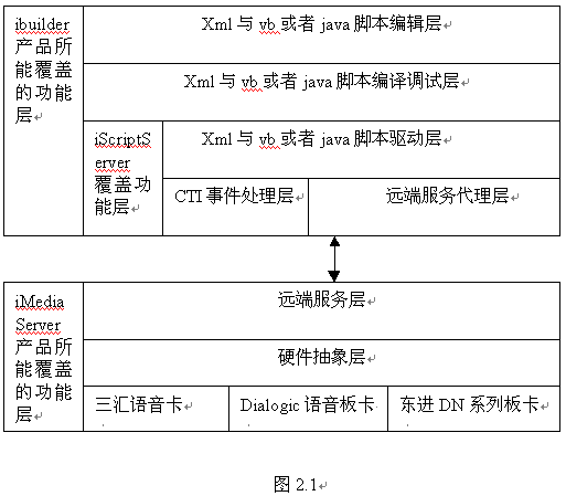 如圖2.1所述,ibuilder產(chǎn)品覆蓋了腳本編輯、編譯調(diào)試、腳本驅(qū)動、遠端服務代理的功能,占據(jù)了IVR業(yè)務系統(tǒng)重要的一部分。