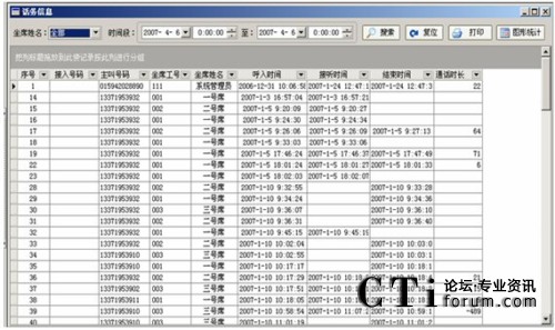系統(tǒng)提供統(tǒng)計報表生成工具,實現(xiàn)對系統(tǒng)訪問次數(shù)的統(tǒng)計與分析,并以圖示直觀地反映出用戶關(guān)注的熱點?砂粗鹘刑柎a、局向統(tǒng)計時長,并自動生成效果圖,直觀表現(xiàn)業(yè)務(wù)發(fā)展。還可根據(jù)主叫統(tǒng)計時長,當(dāng)天分析,本周分析,本月分析,提供時長走勢圖(可以以小時為單位分析時長的走勢,也可以以天為單位分析時長的走勢)