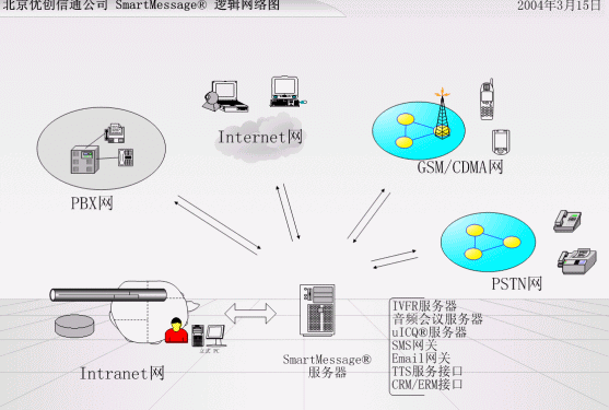 完全自主版權(quán)的 SmartMessage Pro®是專(zhuān)為企業(yè)級(jí)使用單位設(shè)計(jì)的通信服務(wù)平臺(tái),提供多種通信一體化解決方案,如統(tǒng)一消息、語(yǔ)音郵件、交互會(huì)議、IVR、手機(jī)短信/傳真/電話(huà)服務(wù)及呼叫中心,這些應(yīng)用可無(wú)縫集成在一套標(biāo)準(zhǔn)化平臺(tái)上,是全方位實(shí)施CRM系統(tǒng)和電子商務(wù)服務(wù)解決方案的重要組成。