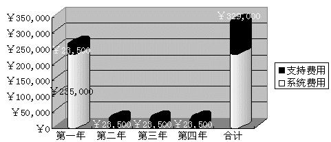 2) 語音合成投入費用 科大訊飛公司語音合成技術(shù)以及硬件設備的折舊期為四年,而就經(jīng)過大量統(tǒng)計所得到的數(shù)據(jù)證明,采用語音技術(shù)后的一個72線的IVR系統(tǒng),大約可以完成一個中型的呼叫中心(配備100座席人員)所能提供的60%的業(yè)務。下圖為采用訊飛語音合成技術(shù)建設這樣的IVR系統(tǒng)的投入。