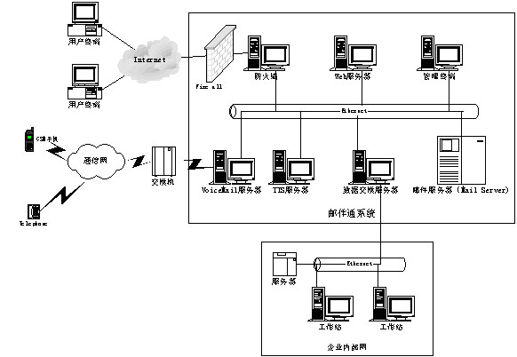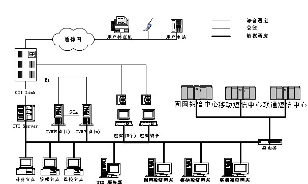 對(duì)于不同類型消息呼入、呼出的外圍系統(tǒng)設(shè)計(jì)遵循模塊化原則;系統(tǒng)內(nèi)部消息流滿足格式統(tǒng)一、可操作性統(tǒng)一、開發(fā)接口統(tǒng)一等特點(diǎn)。在軟、硬件選型上,充分考慮系統(tǒng)的穩(wěn)定性、開放性、經(jīng)濟(jì)性,根據(jù)不同的系統(tǒng)規(guī)模進(jìn)行詳細(xì)論證。