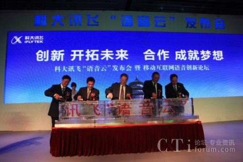 CTI論壇(ctiforum)10月29日消息(記者 潘婷婷): 2010年10月28日,“科大訊飛‘語音云’發(fā)布會暨移動(dòng)互聯(lián)網(wǎng)語音創(chuàng)新論壇”在北京香格里拉飯店隆重舉行?拼笥嶏w作為中國語音產(chǎn)業(yè)領(lǐng)導(dǎo)者,在業(yè)界率先推出“訊飛語音云”,對于促進(jìn)國家新近確定的七大戰(zhàn)略新興產(chǎn)業(yè)之一的“新一代信息技術(shù)”發(fā)展具有重大意義,將推動(dòng)移動(dòng)互聯(lián)網(wǎng)邁入語音時(shí)代,創(chuàng)新無限豐富的應(yīng)用、創(chuàng)造廣闊的市場藍(lán)海。因此,此次發(fā)布會得到了各界的高度關(guān)注,各相關(guān)政府部門領(lǐng)導(dǎo),聯(lián)想、騰訊、愛國者、優(yōu)視科技、播思通訊等各行業(yè)及移動(dòng)互聯(lián)網(wǎng)領(lǐng)軍企業(yè)的代表,媒體界朋友,匯聚一堂、共襄盛舉,并就移動(dòng)互聯(lián)網(wǎng)與語音產(chǎn)業(yè)的相互融合、創(chuàng)新發(fā)展、合力共贏進(jìn)行了深入熱烈的探討。