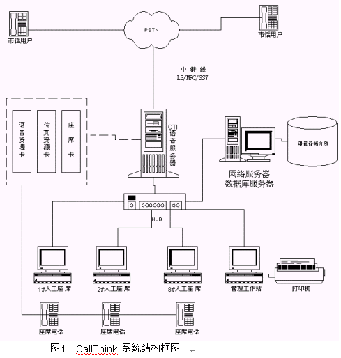 正是基于以上考慮,北京強(qiáng)訊公司根據(jù)多年來(lái)在企業(yè)級(jí)辦公自動(dòng)化通信領(lǐng)域積累的經(jīng)驗(yàn),推出了"CallThink 企業(yè)級(jí)呼叫中心系統(tǒng)",該系統(tǒng)充分考察大多數(shù)企業(yè)的實(shí)際情況,本著合理利用現(xiàn)有設(shè)備,以最小的投入獲取最大的效益的原則,包含了自動(dòng)呼叫分配(ACD)、交互式語(yǔ)音應(yīng)答(IVR)、計(jì)算機(jī)語(yǔ)音集成(CTI)、客戶關(guān)系管理(CRM)等業(yè)務(wù)。