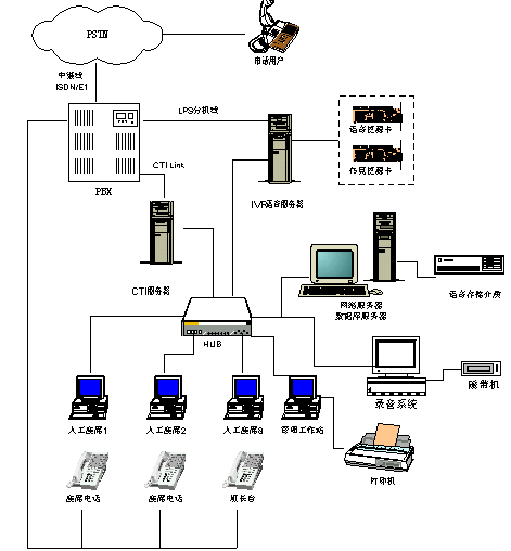 隨著九十年代電信技術和計算機技術的迅猛發(fā)展,以CTI(Computer Telephone Integration)技術為核心,將計算機網(wǎng)絡和通信網(wǎng)緊密結合起來的呼叫中心解決方案已成為第三代呼叫中心主要特征。隨著全球網(wǎng)絡技術,特別是互聯(lián)網(wǎng)技術的迅猛發(fā)展,呼叫中心系統(tǒng)逐漸由普通電話走向了網(wǎng)絡技術。而CTI服務器(CTI Server)是呼叫中心的核心部件,它通過交換機的CTI Link獲取交換機的狀態(tài)并實現(xiàn)對交換機的通信。它是一個將計算機網(wǎng)絡與電話網(wǎng)緊密聯(lián)系的紐帶。CTI服務器部份包括CTI服務器(工控機/服務器)、UltraCTI呼叫控制模塊、CallMonitor呼叫管理/監(jiān)控/統(tǒng)計模塊、UltraCDR呼叫數(shù)據(jù)記錄模塊。