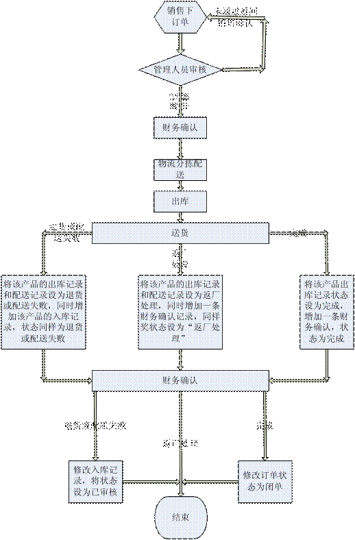 在呼叫中心系統(tǒng)中,為了更好地幫助企業(yè)進(jìn)行銷售管理,UltraCRM系統(tǒng)設(shè)有進(jìn)銷存管理。從產(chǎn)品的采購(gòu)、入庫(kù)出庫(kù)、退貨、返廠處理、庫(kù)存管理、庫(kù)存盤點(diǎn)到財(cái)務(wù)確認(rèn)都有一套完整的流程。參見圖7.22和7.23的產(chǎn)品入庫(kù)流程和出庫(kù)流程。所有在呼叫中心中進(jìn)行銷售的產(chǎn)品數(shù)據(jù)都分類保存在系統(tǒng)的數(shù)據(jù)庫(kù)中,坐席人員可以根據(jù)產(chǎn)品型號(hào)、名稱、關(guān)鍵字等進(jìn)行分類查詢。各類產(chǎn)品的基本參數(shù)、介紹也都包含在產(chǎn)品數(shù)據(jù)庫(kù)中,坐席人員可以很快地查到一項(xiàng)產(chǎn)品的基本信息,提高與用戶溝通的工作效率。