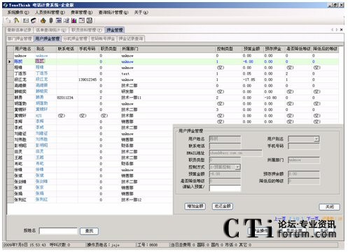系統(tǒng)提供話費的預(yù)算控制和預(yù)存控制(押金管理)功能,用戶可以選擇使用其中一種或都不使用,當電話費用達到設(shè)定的費用金額,系統(tǒng)按照設(shè)定的處理方式(降低分機撥打電話的等級)進行。