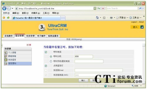 電話通知:如果個人信箱有新留言則可設(shè)置留言通知到分機、手機、外線電話等。