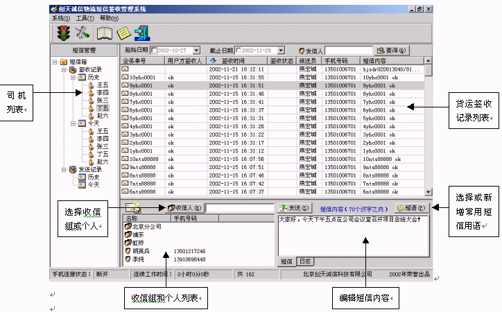 作為物流企業(yè)而言,貨物狀態(tài)的跟蹤非常重要。企業(yè)為了加強自身管理,或給客戶提供更高水平的服務(wù),往往需要在第一時間掌握貨物的運輸狀態(tài)。以往由于通訊手段的落后,貨物狀態(tài)信息及時反饋幾乎很難做到。近兩年來,手機(jī)短信技術(shù)發(fā)展迅速,使之成為可能。