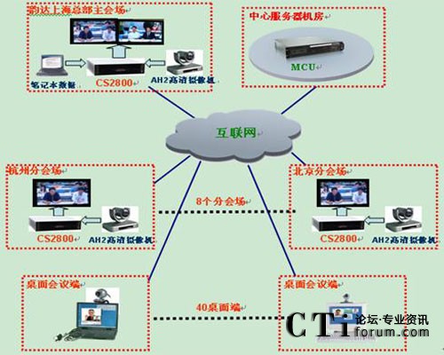 系統(tǒng)為每個點配置華平CS2800全高清視頻終端,它可以實現(xiàn)2路1080P全高清視頻輸入和4路1080P全高清視頻輸出,并且全面支持H.264 High Profile(level5)編碼技術(shù),在視頻精度提高一倍的情況下,所需帶寬減半,實現(xiàn)全動態(tài)1080P視頻傳輸僅需1M的帶寬,配合華平高清MCU,可在韻達快運現(xiàn)有的網(wǎng)絡(luò)條件下實現(xiàn)全公司的全高清視頻會議,實現(xiàn)高清、高效溝通。