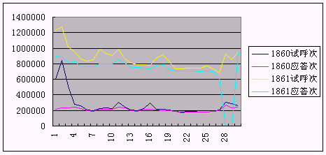 通過對各曲線均值與峰值的對比,也可以清晰的看出,新1861系統(tǒng)的上線不僅有效的提高了1861熱線的接通率,增大了系統(tǒng)容量,而且對1860系統(tǒng)也進(jìn)行了大大的緩解。