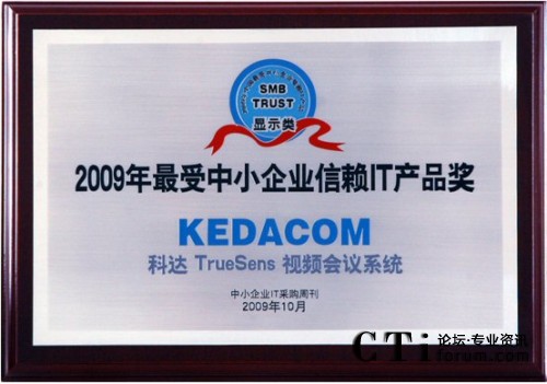CTI論壇(ctiforum)11月23日消息(記者 潘婷):近日,在剛剛結(jié)束的“2009年最受中小企業(yè)信賴IT產(chǎn)品”評(píng)選活動(dòng)中,科達(dá)TrueSens(致勝)視頻會(huì)議系統(tǒng)憑借卓越的產(chǎn)品性能和良好的服務(wù)品質(zhì)在眾多IT產(chǎn)品中脫穎而出,獲此殊榮。CTI論壇報(bào)道