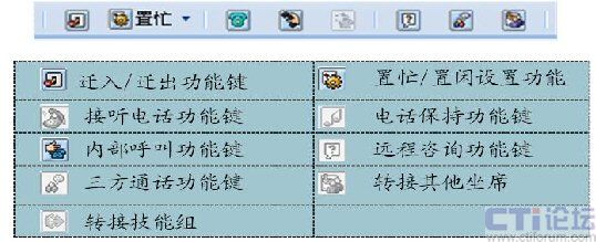 基于業(yè)務(wù)支撐平臺(tái)的JTAPI開發(fā)包所開發(fā)的Applet程序,實(shí)現(xiàn)座席員所需要的話務(wù)功能,可以和頁(yè)面進(jìn)行交互;軟電話條如下: