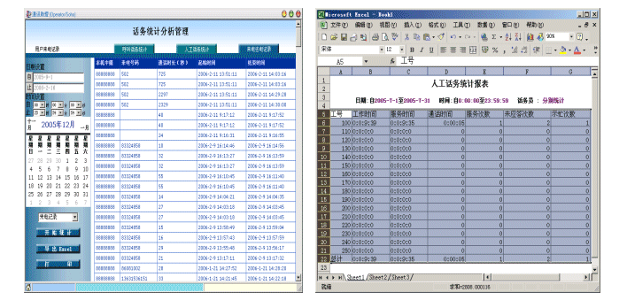 詳細的話務(wù)記錄和話務(wù)統(tǒng)計分析,可生成各類表、圖表,并可以到出為Excel報表。