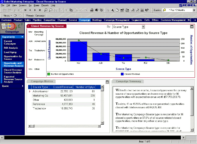 Siebel eBriefings 、Siebel eContent Services主要應(yīng)用于對于大量商務(wù)信息的過濾和篩選。通常,企業(yè)職員需要花費大量的時間和精力搜尋他們所需要的數(shù)據(jù)與信息。Siebel eBriefings and Siebel eContent Services可以幫助企業(yè)職員利用四種不同的信息類型(個人信息、賬戶信息、競爭對手資料、公司狀況信息),從Internet 、extranet和intranet,搜集其所需要的個性化的信息資料。 Siebel eBriefings和Siebel eContent Services還可以與許多企業(yè)外部的搜索門戶系統(tǒng)進行集成與聯(lián)結(jié),可從其上面獲得豐富的新聞信息、企業(yè)信息、及其他公開的信息資料。