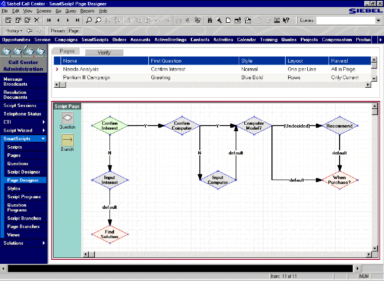 圖三. Siebel eMarketing綜合的客戶及市場分析 | 圖四. 使用Siebel eSmartScript工具設(shè)計市場營銷策略工作流程 |