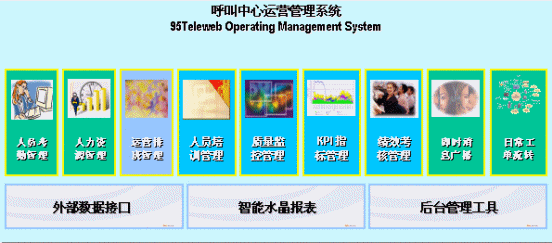 Teleweb-OMS運營管理系統(tǒng)共有11個模塊,涵蓋了動態(tài)質(zhì)檢管理、培訓管理、考勤管理、人力資源管理、話務(wù)預測與自動排班、KPI管理、績效考核、部門間的需求單管理等各個環(huán)節(jié),并且提供了外部數(shù)據(jù)抽取功能和報表自動生成功能。