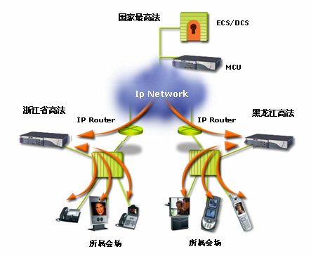 MCU視頻會(huì)議交互平臺(tái),組成了由24臺(tái)RADVISION MCU實(shí)現(xiàn)的最高法院-22個(gè)省級(jí)法院-地(市)法院的3級(jí)視頻會(huì)議網(wǎng)絡(luò)。RADVISION建設(shè)的視頻會(huì)議系統(tǒng),既可以實(shí)現(xiàn)每個(gè)省單獨(dú)同時(shí)或分時(shí)靈活組建省—地(市)兩級(jí)視頻會(huì)議,也可以召開最高法院—22個(gè)省級(jí)法院—地(市)法院的3級(jí)視頻會(huì)議,并實(shí)現(xiàn)了最高法院對(duì)地(市)法院視頻會(huì)議終端的直接控制和管理。